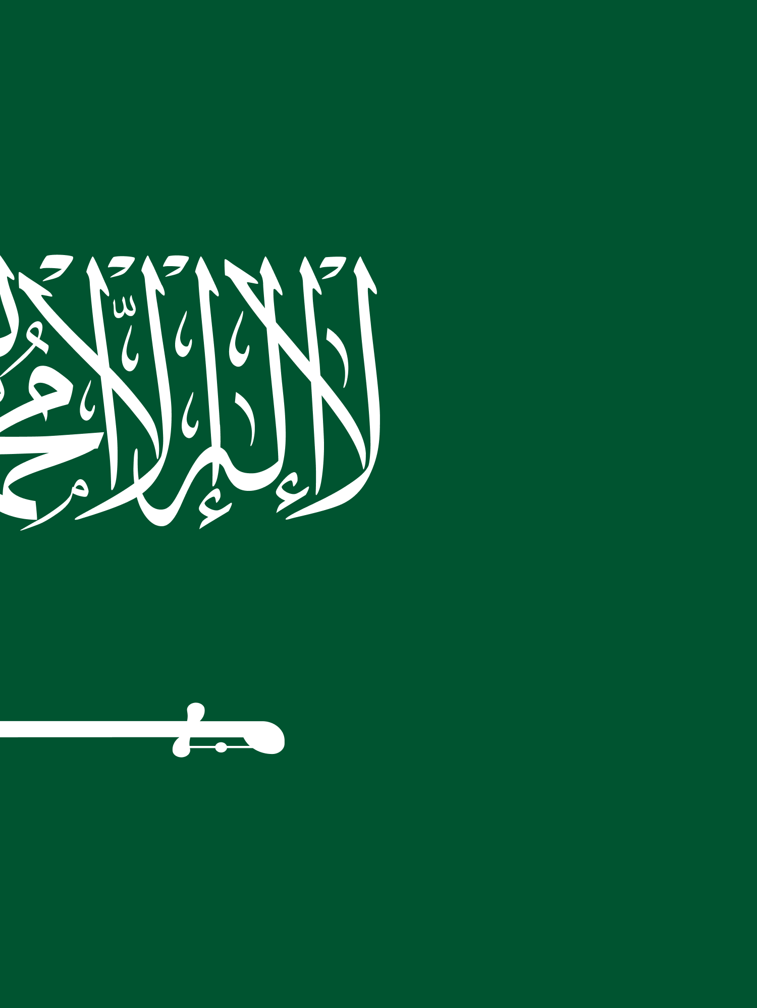 مستطيل عرضه يساوي ثلثي طوله، ولونه أخضر يمتد من السارية إلى نهاية العلم، تتوسطه الشهادتان" لا إله إلا الله محمد رسول الله"، وسيف مسلول تحتهما وموازٍ لهما، قبضته إلى اليمين، ورسمت الشهادة والسيف باللون الأبيض وسط مساحته.